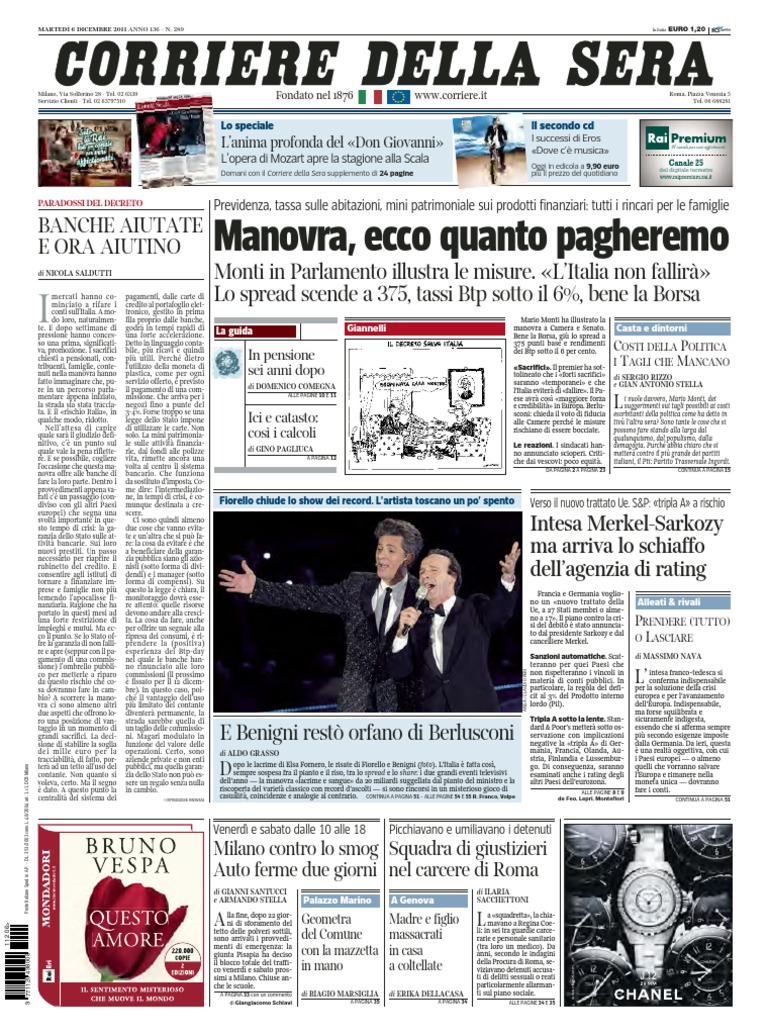 Fondato nel 1876, il Corriere della Sera è il più diffuso tra i quotidiani italiani (tiratura di 434.835 copie).